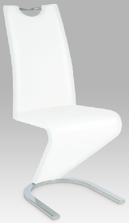 Pôsobivá dizajnová jedálenská stolička ideálna do moderných kuchýň. Spodná časť nôh (základňa) je pochrómovaná. Sedák a operadlo a časť oblasti nôh sú čalúnené koženkou v bielej farbe.