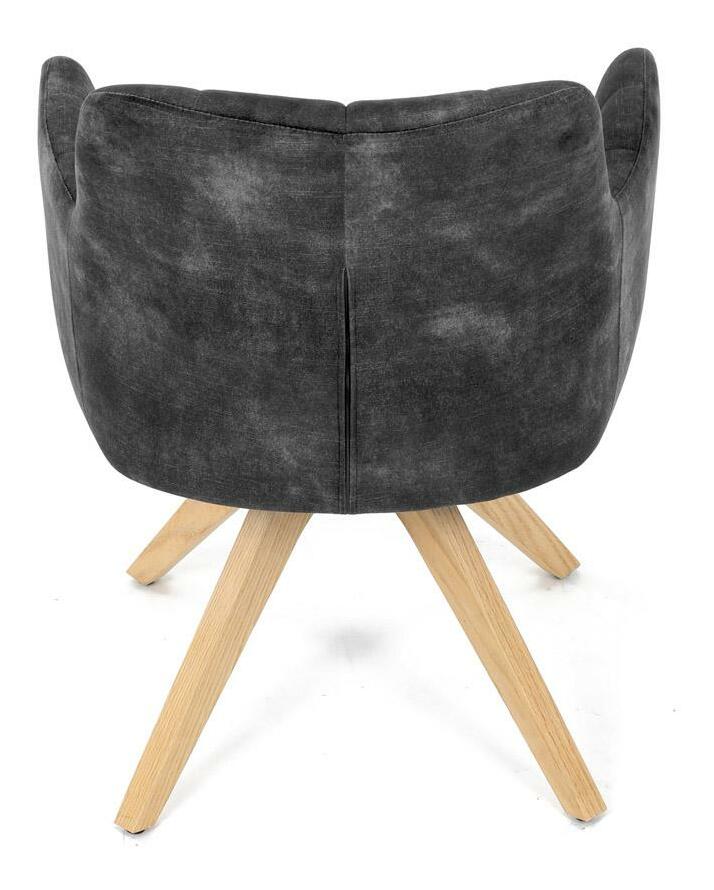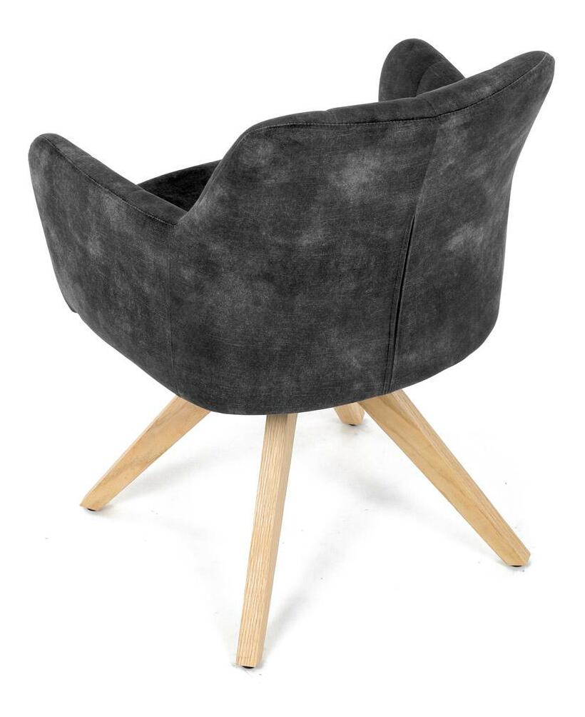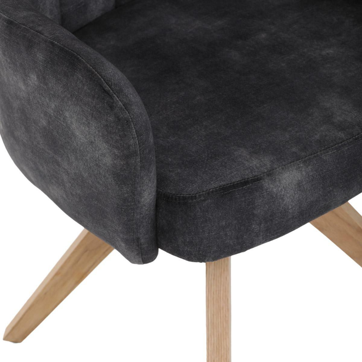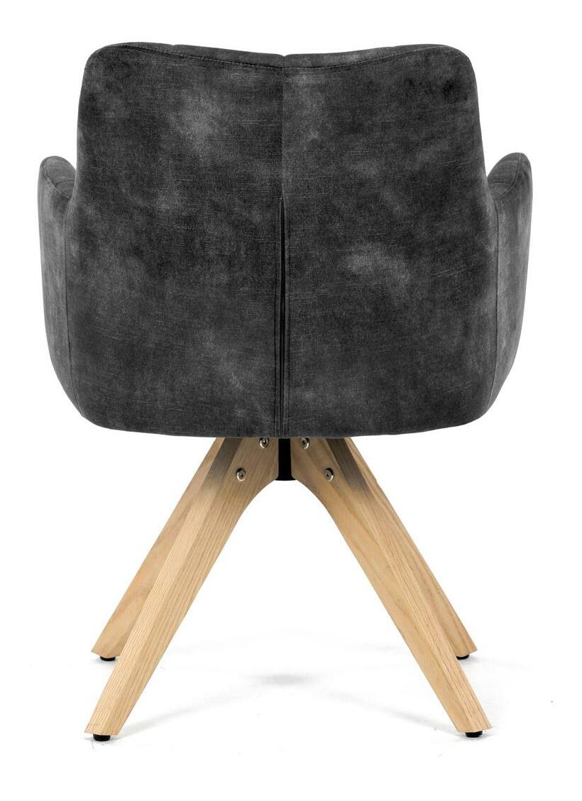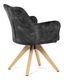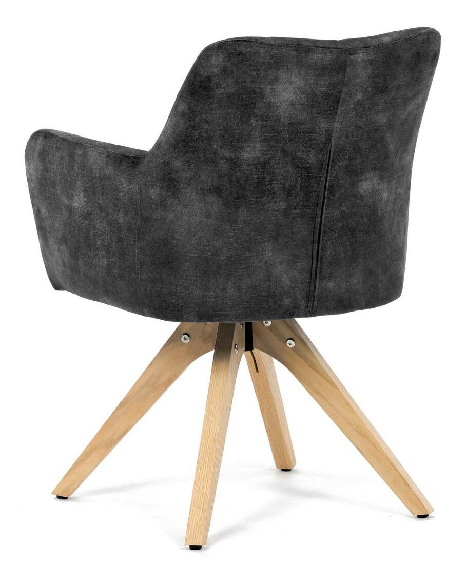 Elegantná čalúnená stolička zaujme na prvý pohľad svojou čiernou zamatovou látkou, ktorá dodáva interiéru moderný šmrnc. Masívne nohy v prírodnej farbe vytvárajú stabilný základ a skvele harmonizujú s celkovým designom. Komfortné podrúčky zaistia pohodlie pri sedení. Navyše, integrovaný 360 ° otočný mechanizmus poskytuje maximálnu flexibilitu a pohybový komfort. Ideálna voľba pre štýlové aj funkčné bývanie.