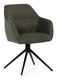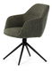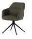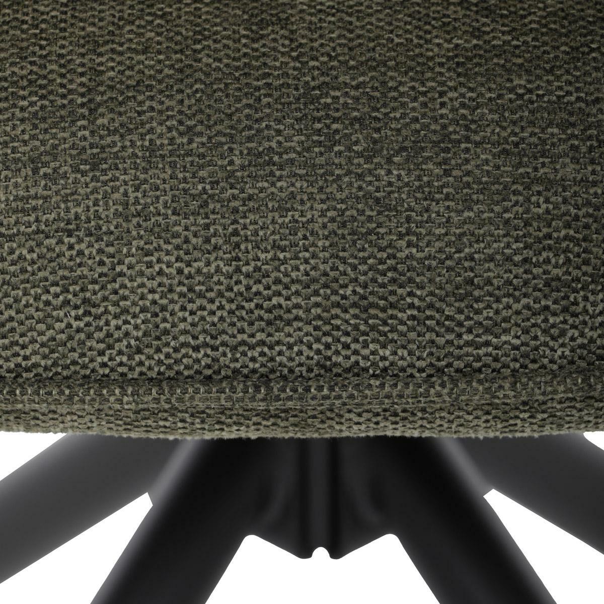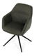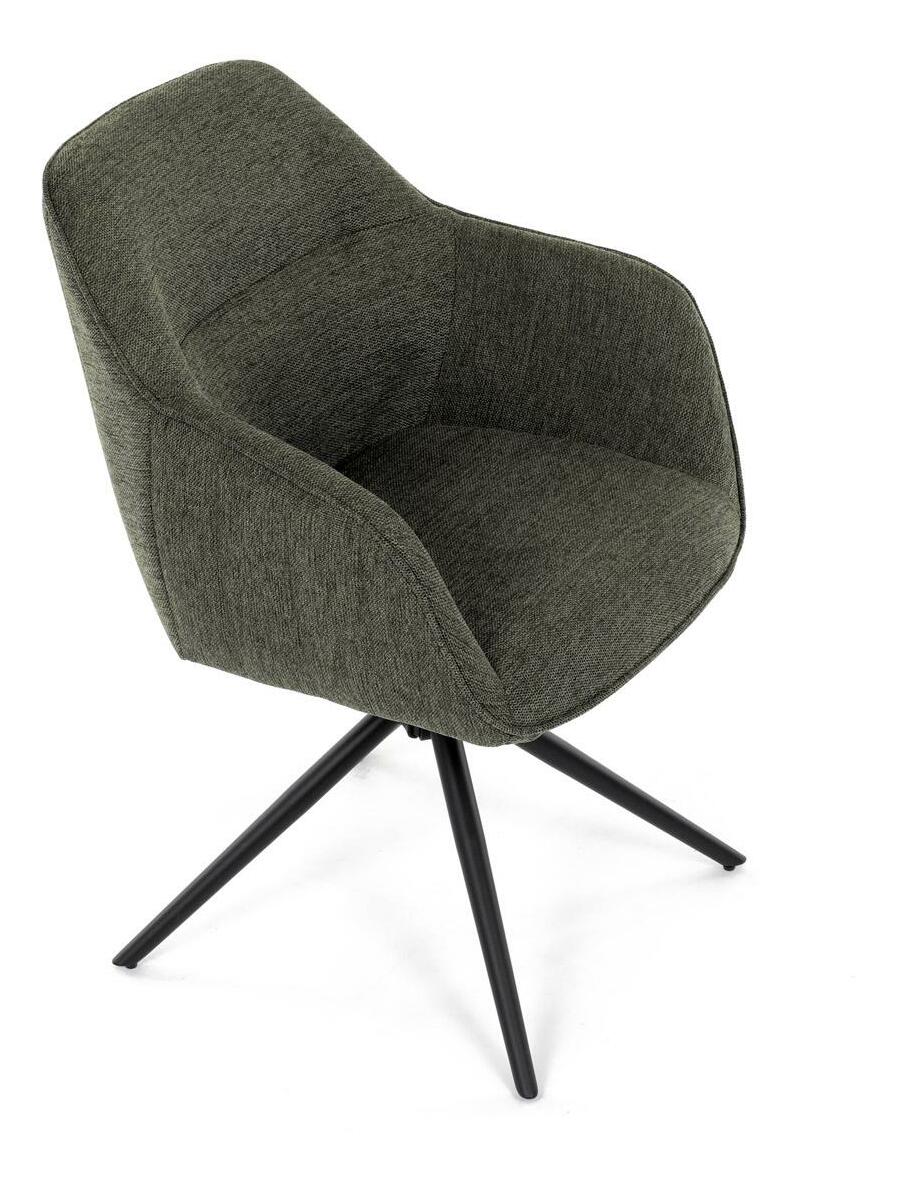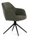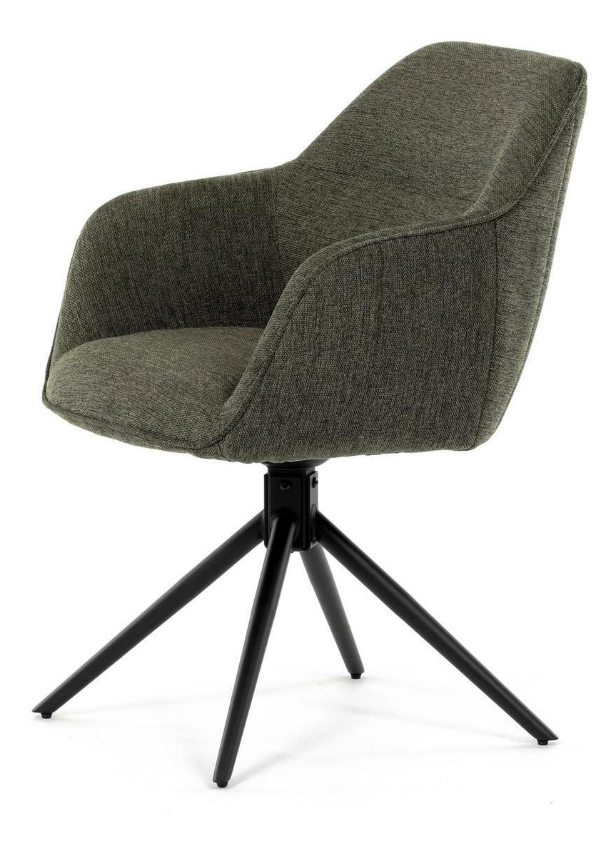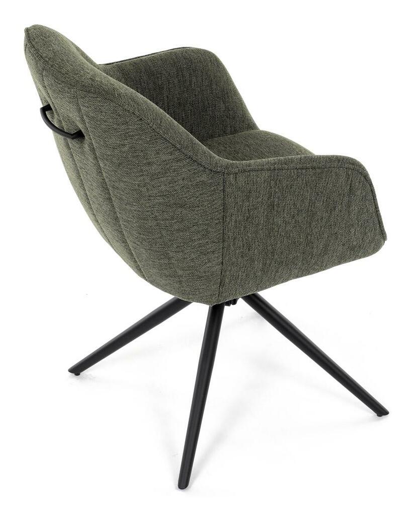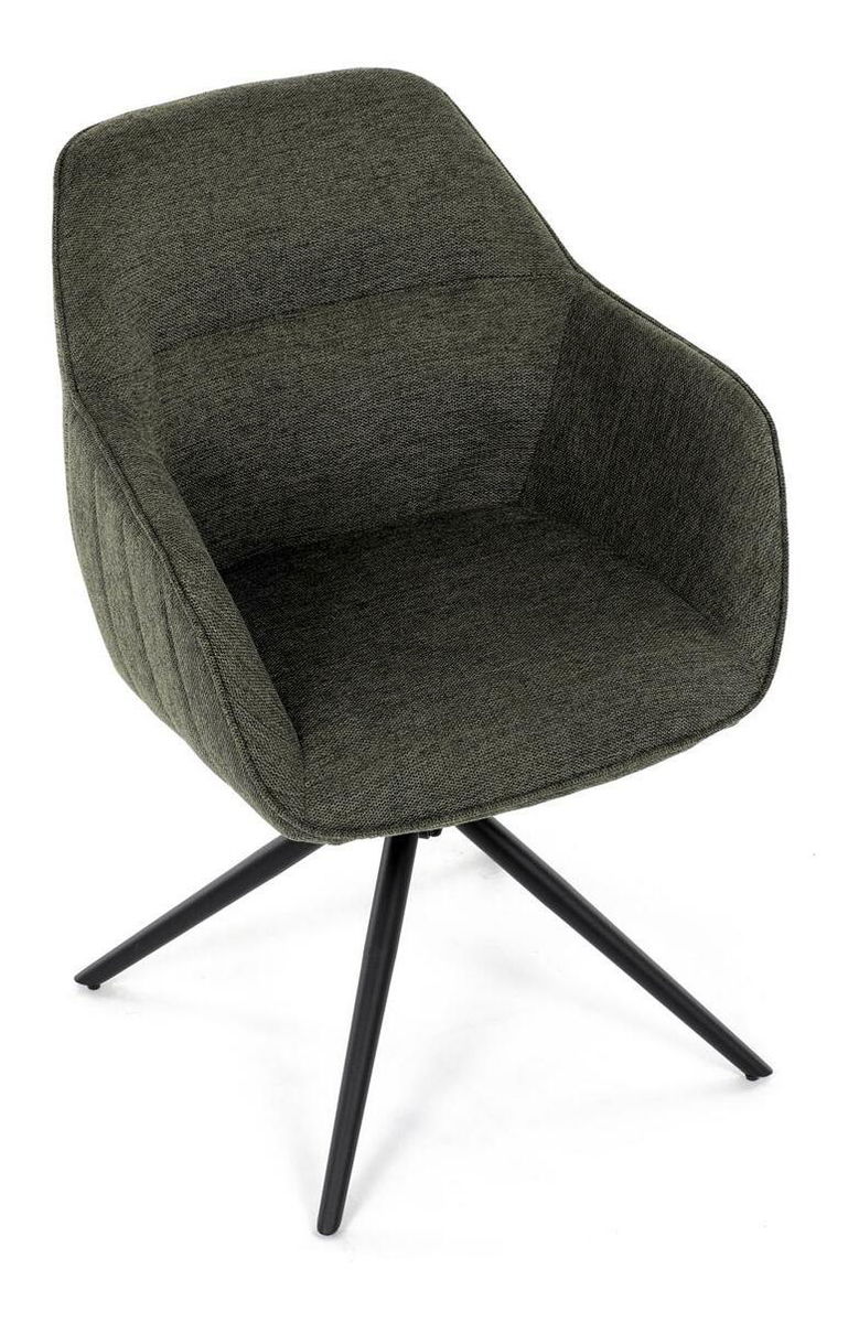 Moderná jedálenská stolička v zelenej barve s efektným prešitím chrbtovej aj prednej časti opierky. Prešitie je v farbe poťahového materiálu. Zadná časť opierky je doplnená vkusným držadlom pre ľahšiu manipuláciu. Štyri kovové nohy v matnom práškovom nástreku vychádzajú z centrálneho bodu v strede sedadla. Sedák je otočný o P90° L 90° s vratným mechanizmom - funkcia reset.