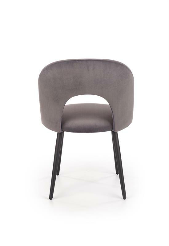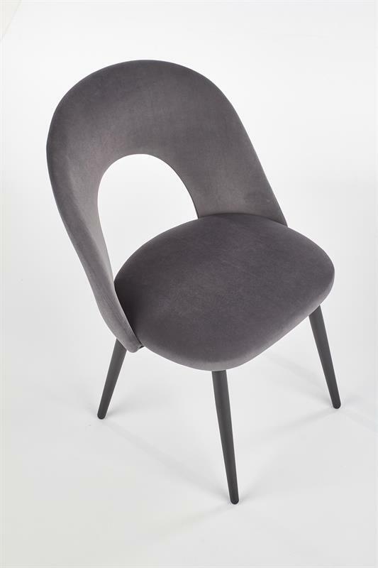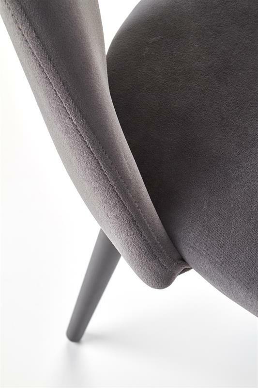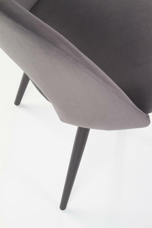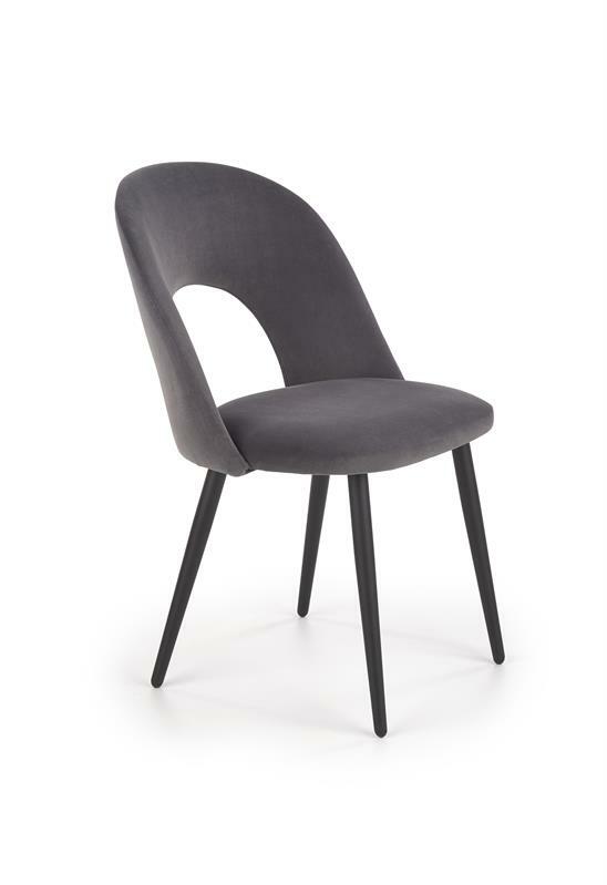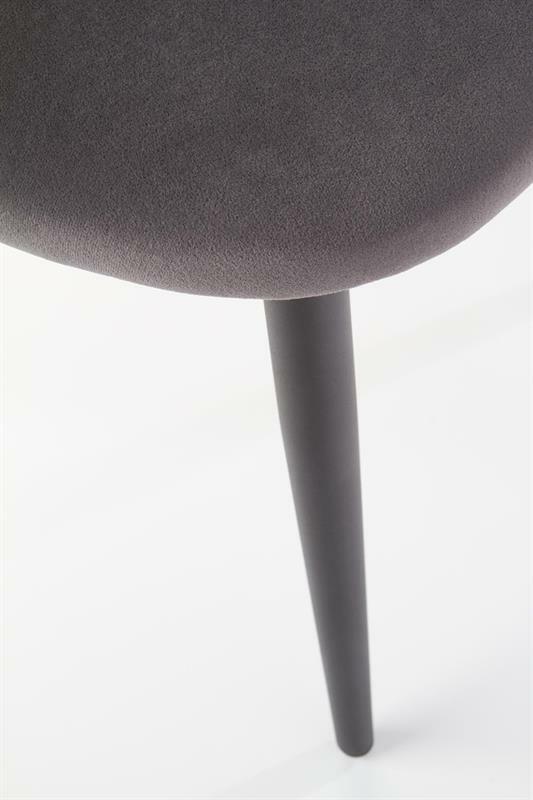 Jedálenská stolička Hout v sivej farbe je ideálnym doplnkom pre moderné jedálne, kuchyne či obývacie priestory. Kombinácia zamatovej látky a práškovej ocele prináša nielen príjemný dotyk a pohodlie pri sedení, ale aj vysokú odolnosť a stabilitu.