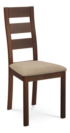 Drevená jedálenská stolička v prevedení farby orech. Sedák je čalúnený s béžovej farbe.