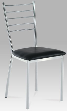 Kovová jedálenská stolička v prevedení chróm, sedák je v prevedení koženka čierna.