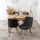 Jedálenská stolička Kramnik v čiernej farbe je vhodným doplnkom pre moderné jedálne, kuchyne či obývacie priestory. Kombinácia kvalitnej látky a pevného dreveného rámu v odtieni dubu prináša dlhodobú odolnosť a stabilitu spolu so štýlovým vzhľadom.