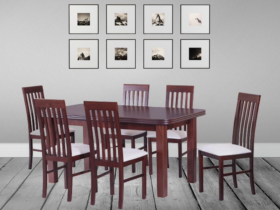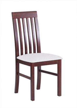 Štýlová jedálenská stolička vhodná do moderných i tradičnejšie zariadených jedální. Operadlová časť so zvislými výrezmi je drevená a sedacia časť stoličky je čalúnená.