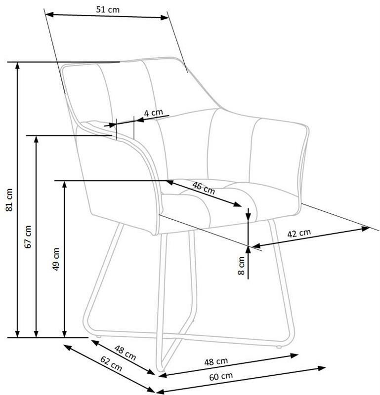 - Výška sedu 49 cm je ideálna pre väčšinu jedálenských stolov, čo z nej robí univerzálny doplnok do rôznych typov interiérov.