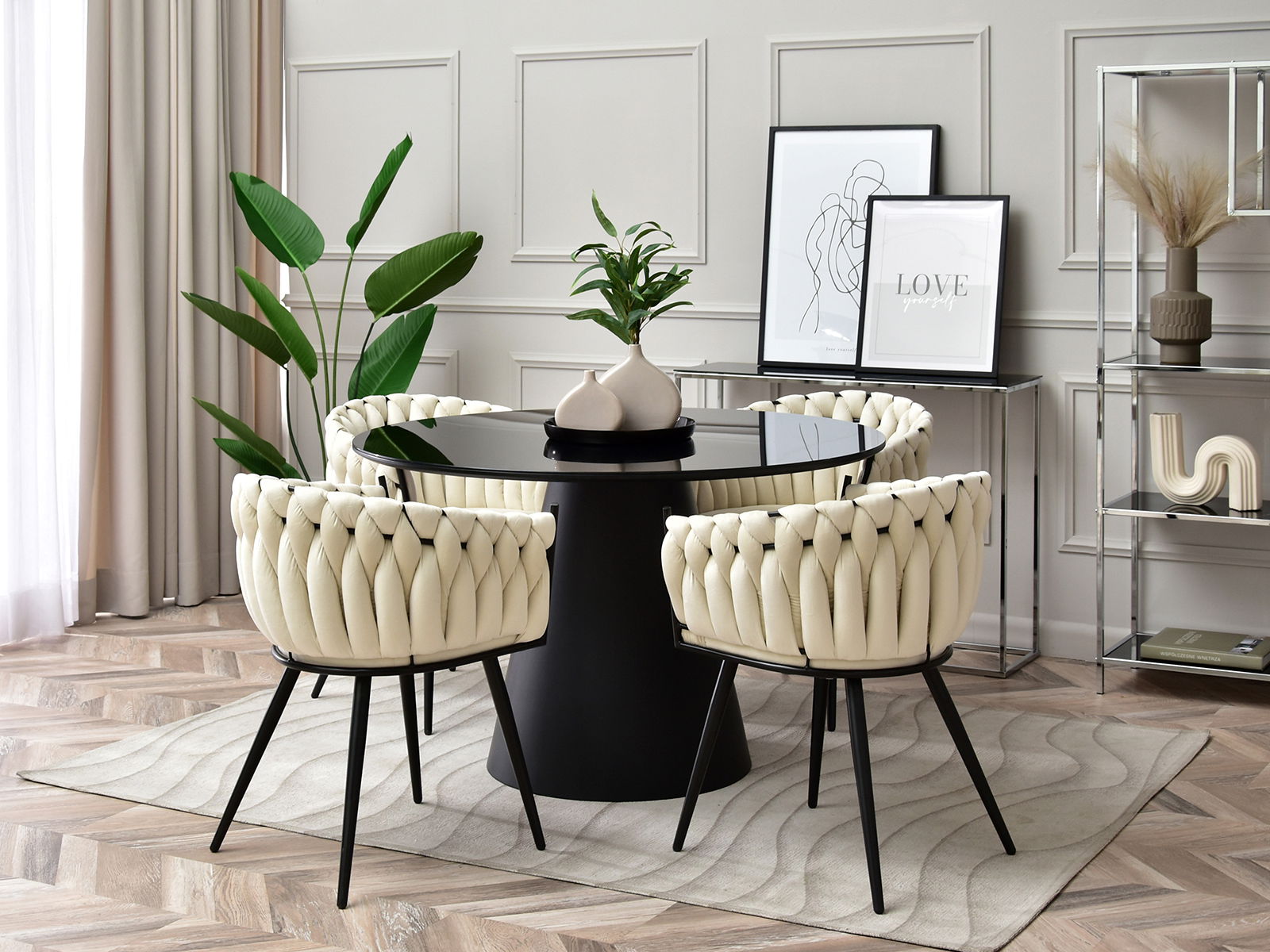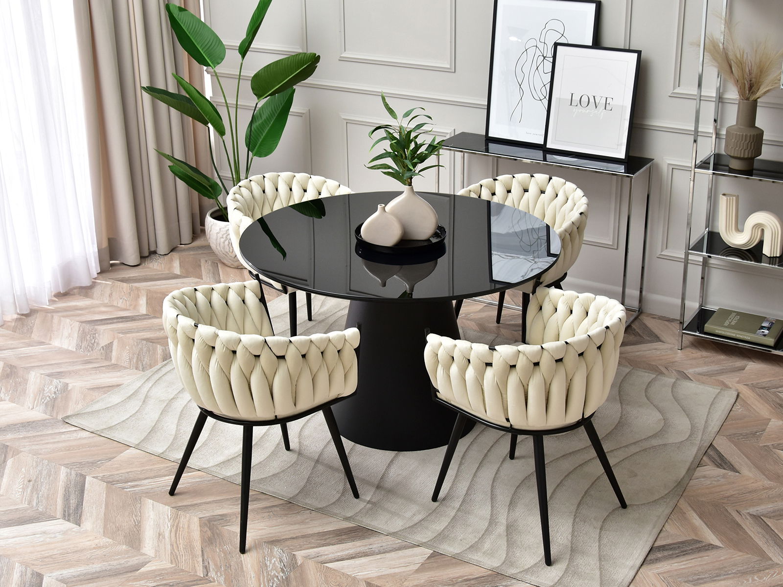 - Univerzálny dizajn a neutrálna čierna farba umožňujú jednoduché kombinovanie s ďalším nábytkom, ako sú jedálenské stoly, konferenčné stolíky, kancelárske stoly či obývacie zostavy.