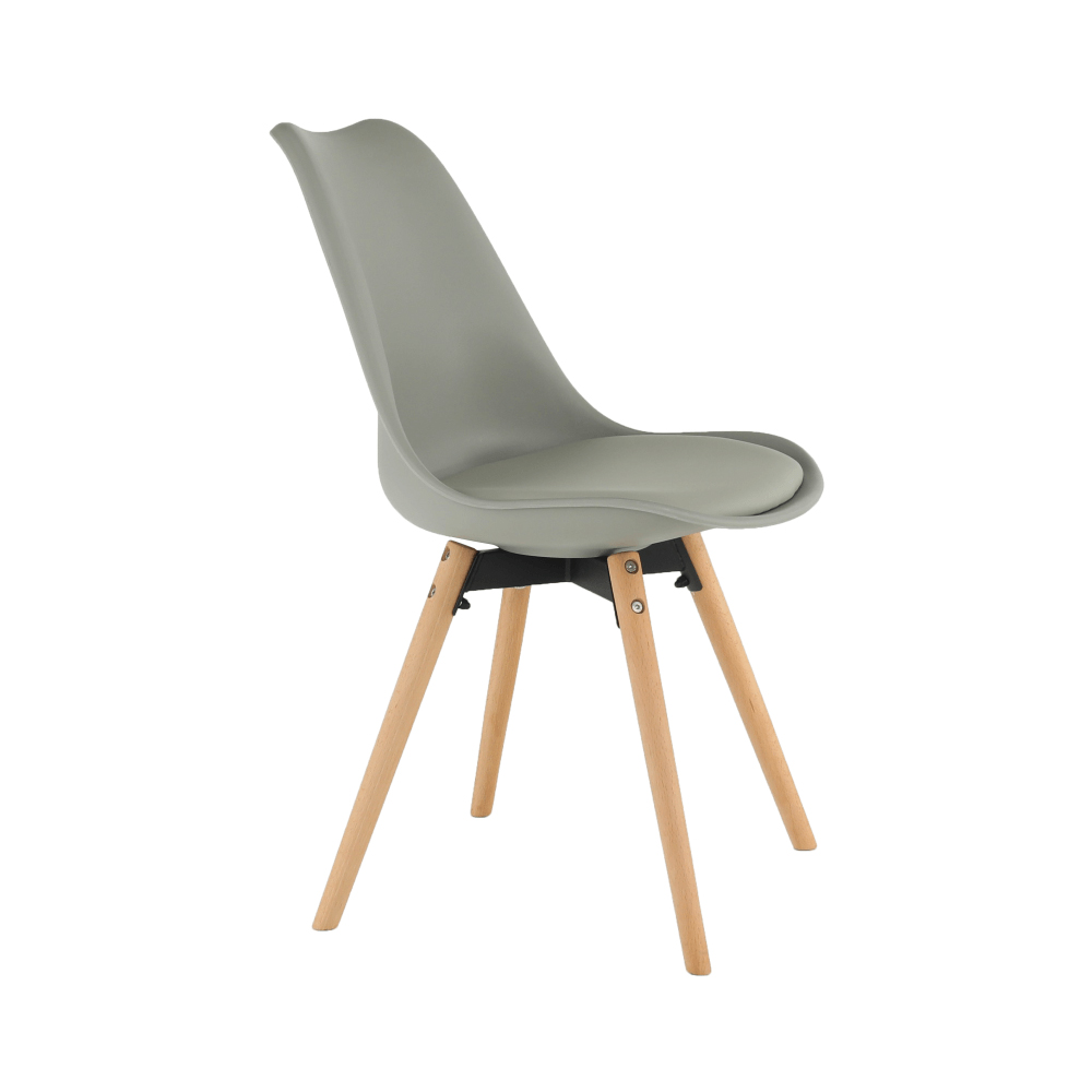 Jedálenská stolička Semer je vyrobená z kvalitných materiálov drevo, ekokoža a plast. Vďaka svojmu extra pohodlnému a mäkkému sedadlu a ľahko kombinovateľnej svetlosivej farbe s bukovými nohami sa stane vaším obľúbeným kúskom v jedálni či kuchyni, jej prednosti oceníte aj v kancelárii či zasadačke.