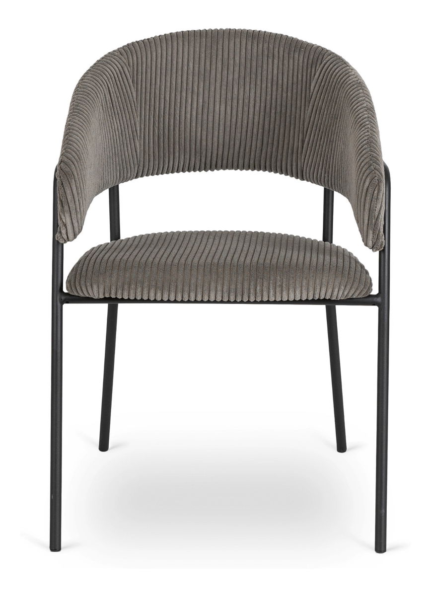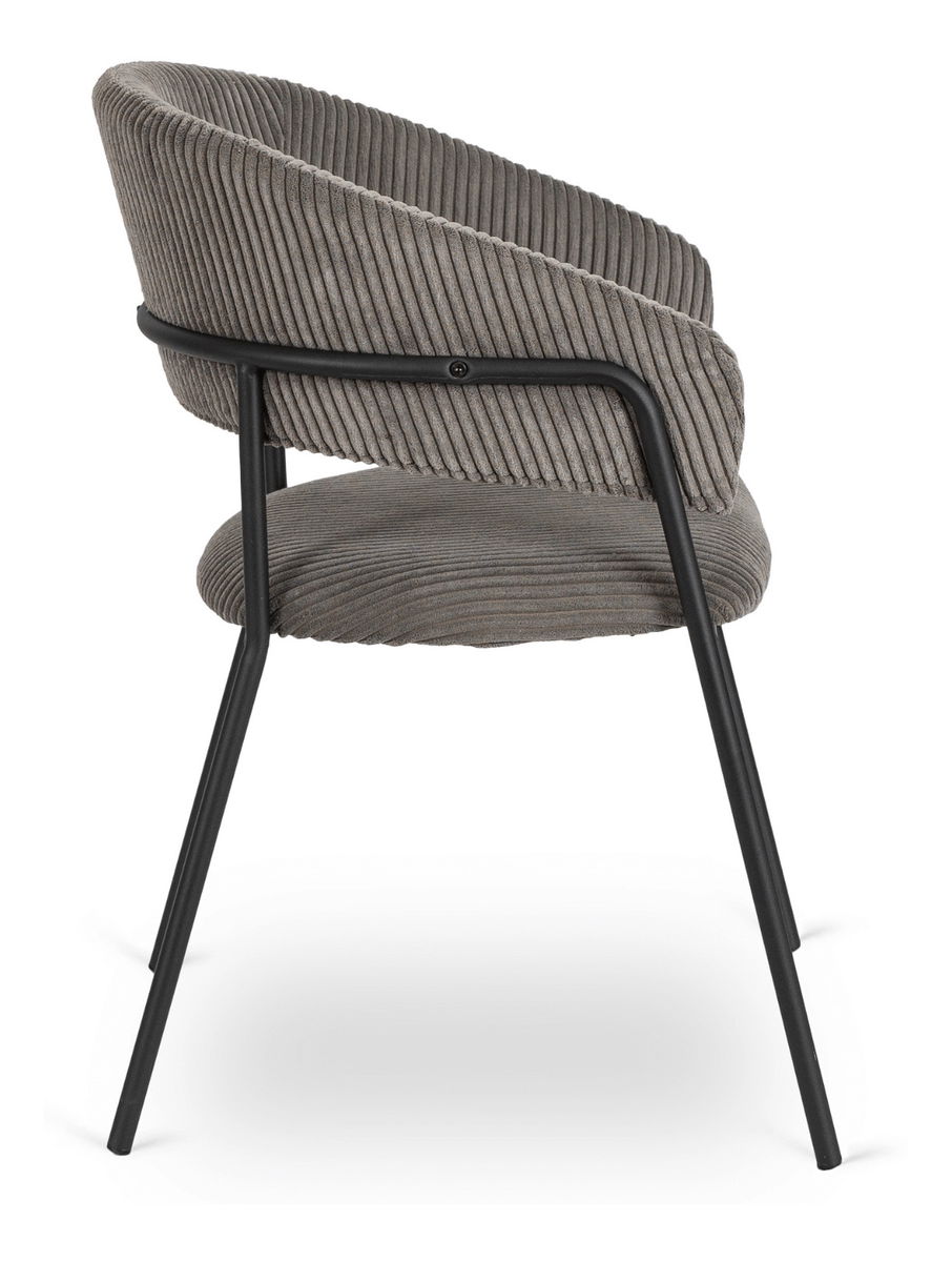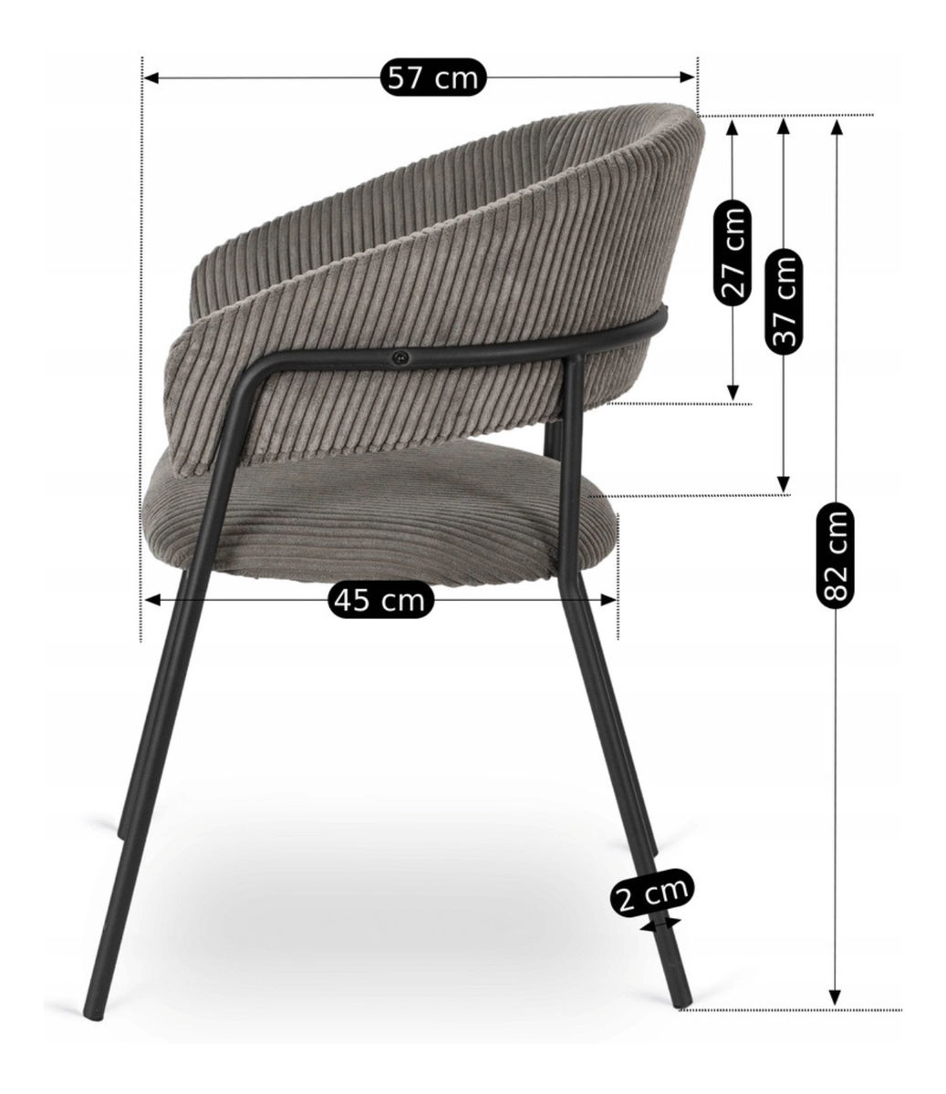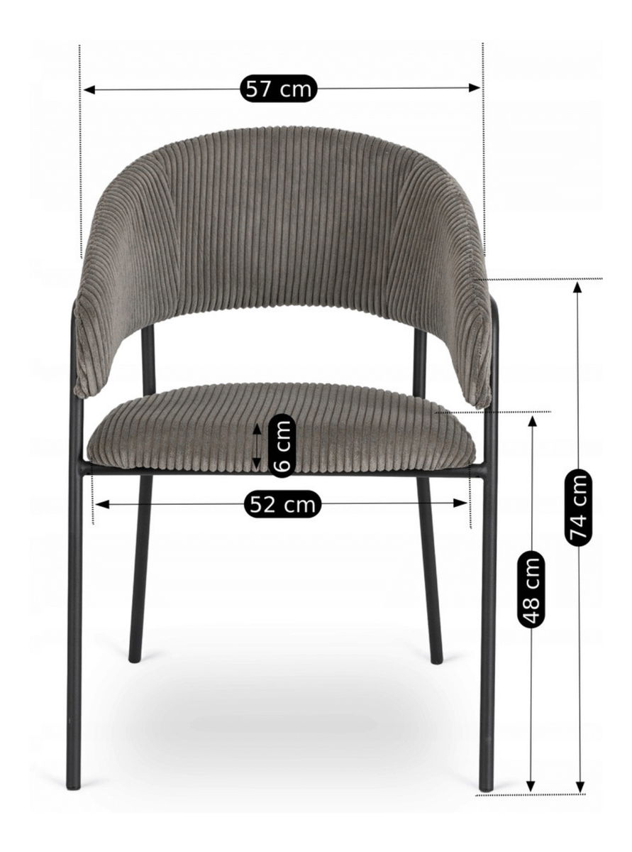 Jedálenská stolička Timka v sivej farbe je vhodným doplnkom pre váš jedálenský kút či obývaciu izbu. Kombinácia kvalitného mančestra a pevného kovového rámu v čiernej farbe zaručuje dlhú životnosť a stabilitu. Maximálne zaťaženie až 110 kg poskytuje spoľahlivosť pri každodennom používaní.