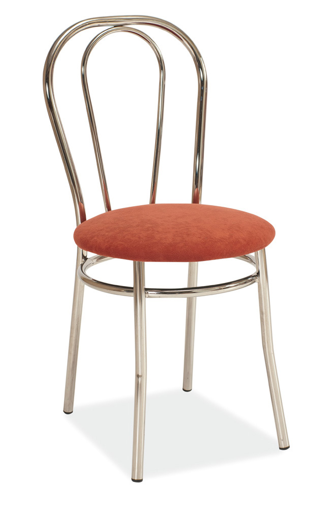 Veľmi pekná jedálenská stolička Tina s jednoduchým dizajnom od značky Signal. Sedák stoličky je potiahnutý koženkou v hnedom farebnom prevedení. Kovový rám stoličky je v chrómovom prevedení.