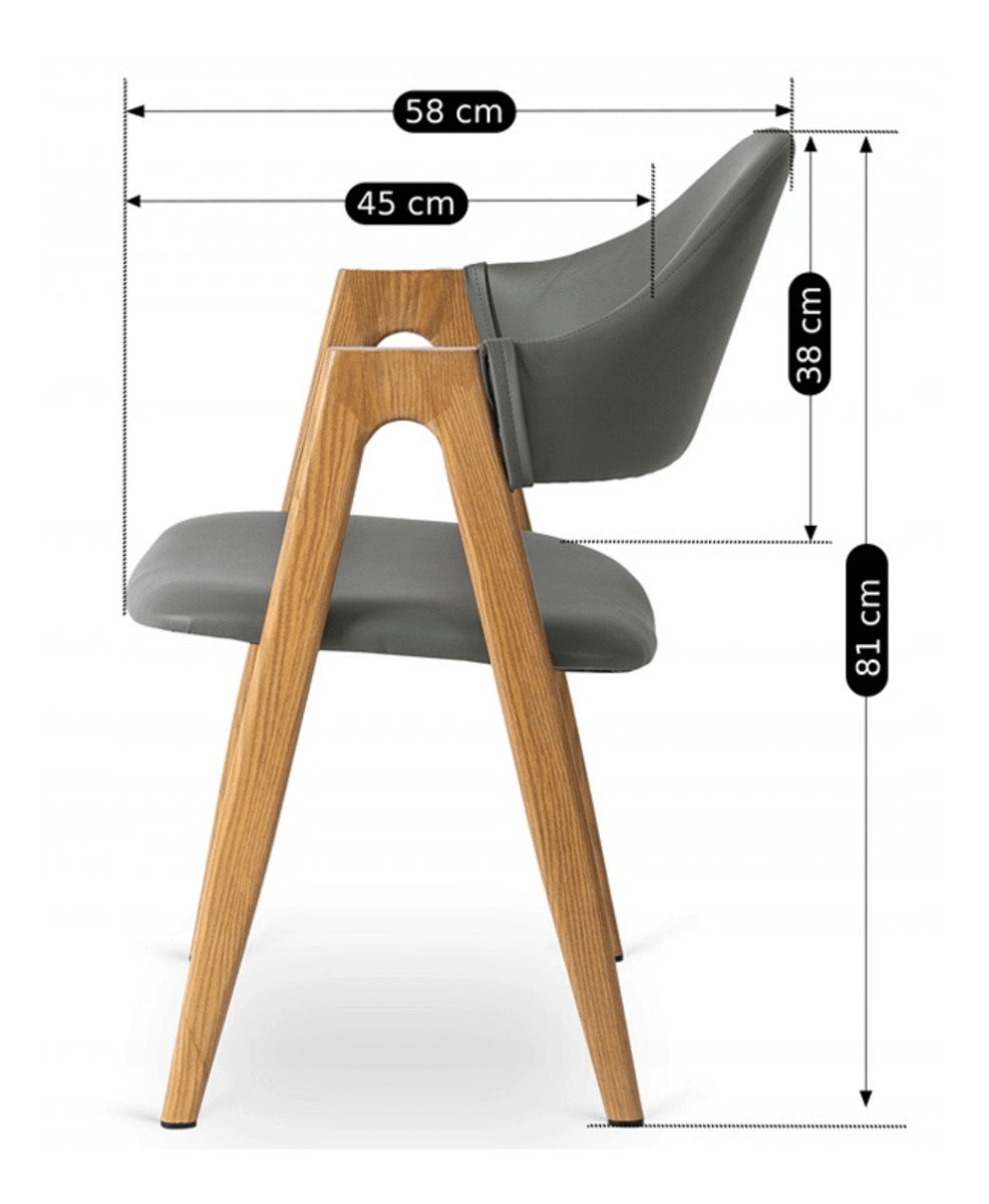 Jedálenská stolička Walsh v sivej farbe je ideálnym doplnkom pre moderné interiéry, ktoré ocenia spojenie štýlu a pohodlia. Kombinácia ekologickej kože a pevného kovového rámu v odtieni zlatého dubu prináša nielen vizuálnu príťažlivosť, ale aj dlhodobú odolnosť a jednoduchú údržbu. S rozmermi prispôsobenými na komfortné sedenie – šírka sedadla 41 cm, hĺbka 45 cm a výška sedadla 49 cm – poskytuje dostatok priestoru pre pohodlné stolovanie či prácu pri jedálenskom alebo pracovnom stole.