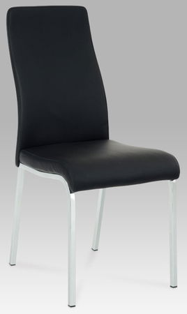 Krásna jedálenská stolička, ktorá sa svojou univerzálnosťou hodí do mnohých jedálení a kuchýň. Chrómové nohy a čalúnenie v čiernej koženke.