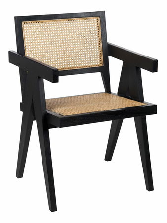 Doplňte svoju obývaciu izbu touto výnimočnou stoličkou s jedinečným dizajnom, ktorá dodá osobitý charakter každému priestoru. Je vyrobená z veľmi kvalitného mahagónového dreva, ktoré je vzácne najmä vďaka svojej odolnosti a pevnosti. Sedadlo a operadlo stoličky je ozdobené viedenským výpletom z prírodného ratanu. Svetlý odtieň ratanu dokonale dopĺňa čiernu konštrukciu stoličky.