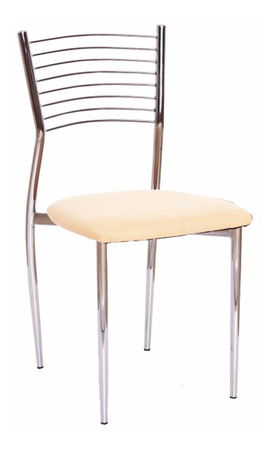 Luxusná stolička zaujímavého tvaru vyplní miesto pri stole či už vo Vašej jedálni, tak aj v kaviarňach, reštauráciách, či iných jedálenských zariadeniach. Chrómový základ je doplnený o čalúnený sedák z kvalitnej ekokože. Vyrába sa v šiestich farebných prevedeniach: tmavohnedá, hnedá, zelená, béžová, červená a oranžová. Výška sedenia je 45 cm.