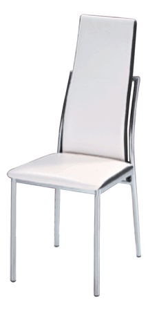 Luxusná jedálenská stolička jednoduchého dizajnu dokonale skrášli Váš jedálenský priestor. Chromovú konštrukciu dopĺňa čalúnený sedák s vysokým operadlom vyrobený z kvalitnej ekokože PU. Stolička je bielej farby a po bokoch má čierny pás. Výška sedu je 45 cm.
