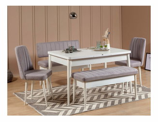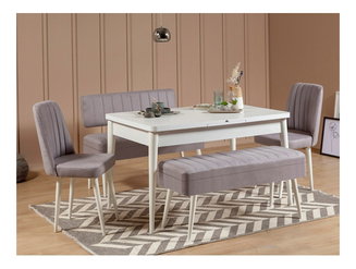 Jedálenské sety s možnosťou vyskladať jedáleň obsahujú okrem jedálenského stola a stoličiek aj ďalšie kusy nábytku, ktoré sú ladené do rovnakého dizajnu. Ak si chcete zariadiť jedáleň v jednotnom štýle, rozšírené jedálenské sety vám značne zjednodušia prácu. Do miestnosti si podľa vlastného uváženia môžete pridať zladenú komodu, vitrínu, regál či zrkadlo.