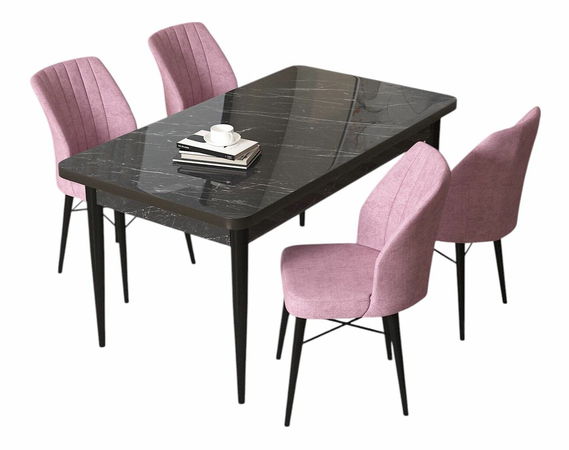 Jedálenský set Arpo (mramor čierny + ružová) (pre 4 osoby)