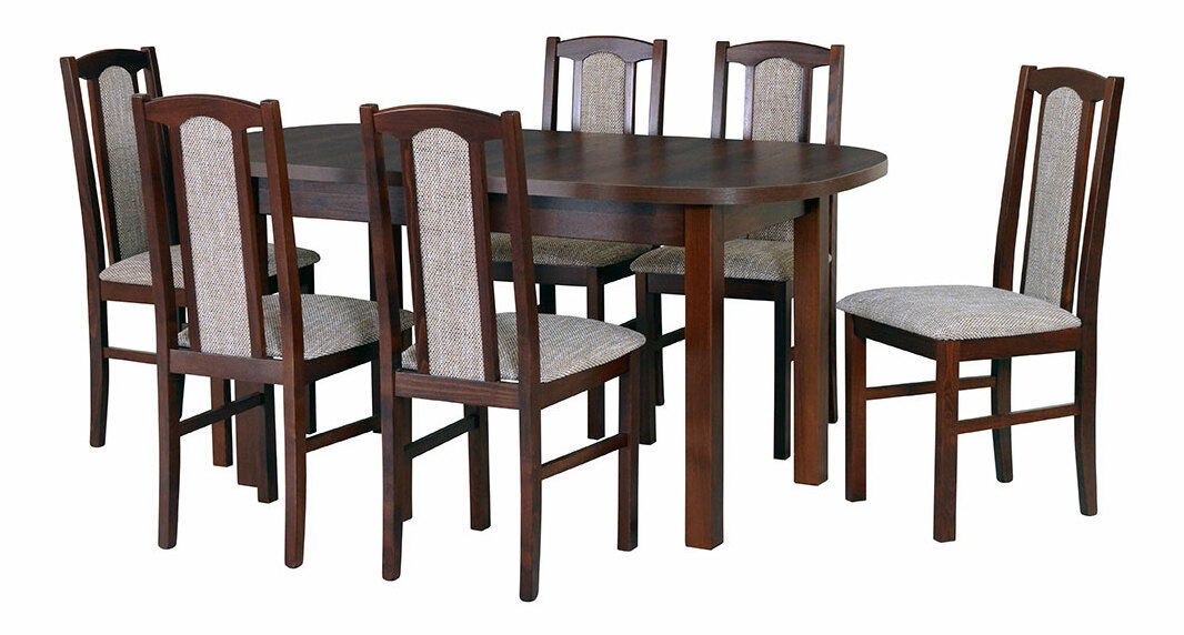 ZobraziťJedálenský set Eliat je elegantný a rustikálny set, ideálny pre 6 až 8 osôb. Je k dispozícii vo viacerých farebných prevedeniach a pohodlne pri ňom usadíte nielen rodinu, ale i zopár hostí. Po rozložení sa pri ňom pohodlne zmestí až osem osôb. Stôl má rozmery 76 x 160-200 x 80 cm a doska stola je vyrobená z laminátu s hrúbkou 32 mm. Hrúbka nôh je 65 x 65 mm a stolička má nosnosť 120 kg. Pri výbere iného farebného prevedenia, než je na obrázku, je požadovaná záloha 50% z ceny vopred. Rozmery balíka č.1 sú 165x16,5x84 cm a váži 34,6 kg. Rozmery balíka č.2 sú 100x55x43 cm a váži 11,4 kg.