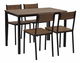 Táto 5-dielna jedálenská súprava v industriálnom štýle sa bude skvele vynímať v tradičnom aj modernom interiéri. Odolná stolová doska vyrobená z MDF materiálu dokonale ladí s čiernym oceľovým rámom s práškovou povrchovou úpravou. Pohodlné sedenie zabezpečujú priestranné sedadlá a široké operadlá stoličiek. Vďaka kompaktným rozmerom a možnosti zasunúť stoličky pod dosku stola je skvelým riešením aj do menších jedální.