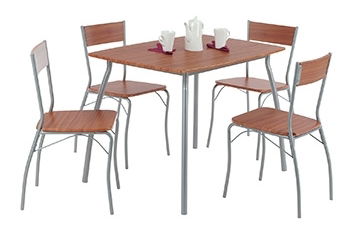 Praktický jedálenský set, ktorý sa skladá z pevného stola a 4 stoličiek. Konštrukcia je kovová, prevedenie hliník. Sedák, operadlo a horná doska stola je v prevedení čerešňa.