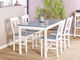 Táto jedálenská súprava pre štyri osoby vnesie do každého priestoru pôvabnú atmosféru vidieka. Je vyrobená z masívneho borovicového dreva, je robustná, stabilná a ľahko sa udržiava. Skladá sa zo stola a štyroch stoličiek v príjemnej kombinácii bielej a sivej farby, ktorá v interiéri vytvorí útulnú domácku atmosféru.