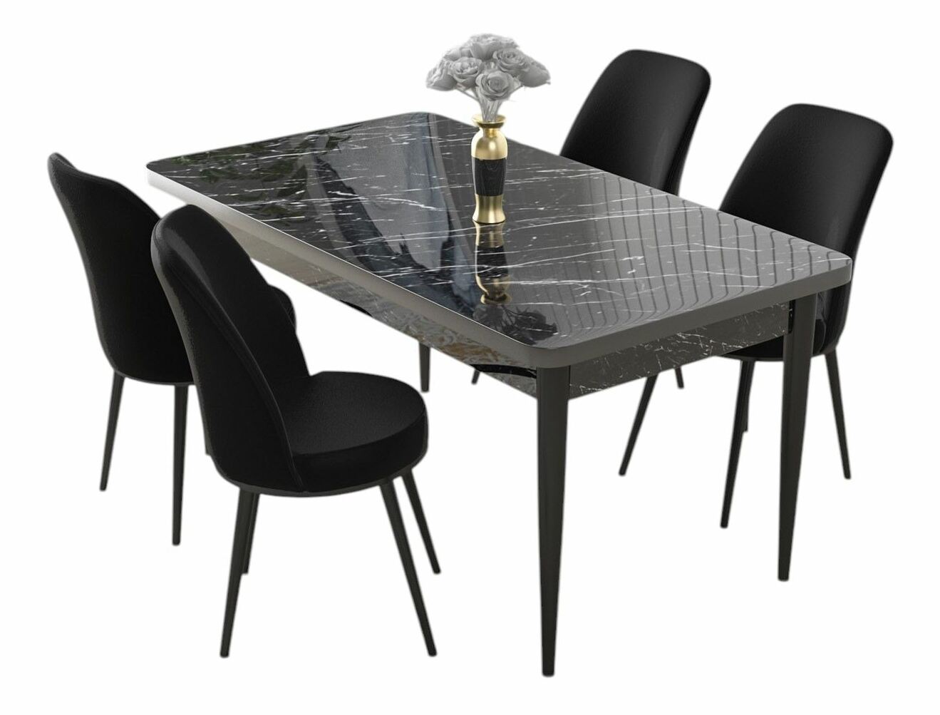 Jedálenský set Nilla (mramor čierny + horčicová) (pre 4 osoby)