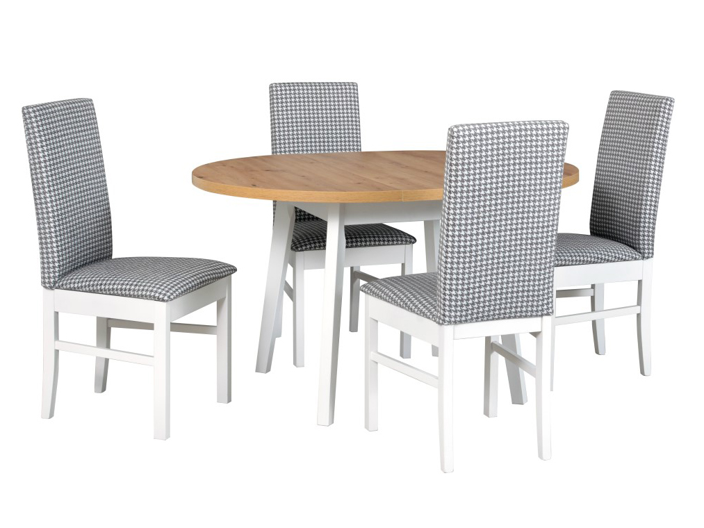 Jedálenský set Ostel 3 je ideálny pre 4 až 6 osôb. Materiál je hrubý 32 mm a stôl má výšku 75 cm s 6,5x4,5 cm nohami. Rozmery stola sú 75 x 100-130 x 100 cm a výška sedu stoličky je 48 cm. Rozmery balíka pre stôl sú 106x17x104 cm/25,4 kg a pre každú stoličku 101x62,5x50 cm/13 kg. Pri výbere iného farebného prevedenia než na obrázku je požadovaná záloha 50% z ceny produktu s DPH vopred. Obrázok je ilustračný.
