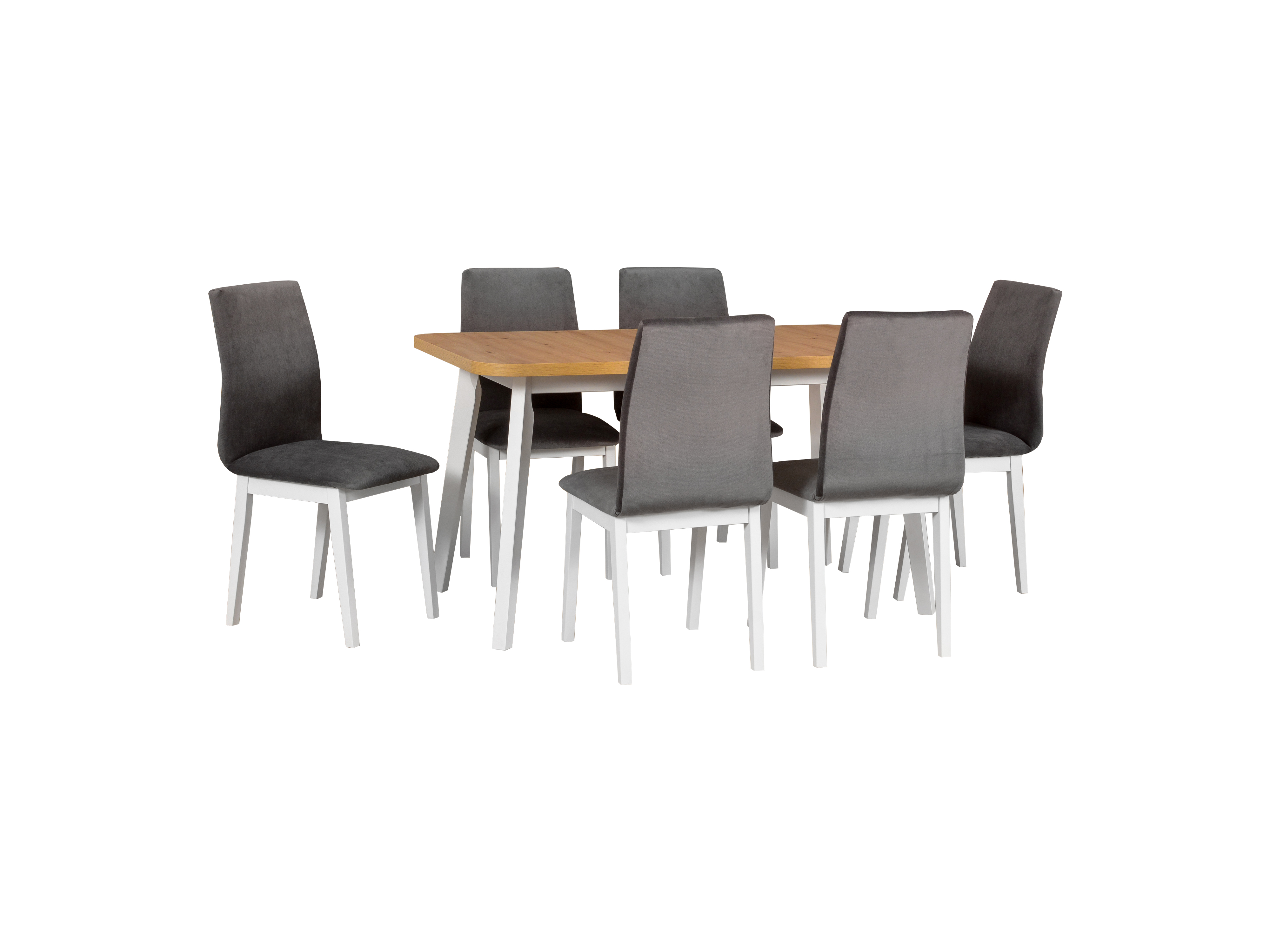 Jedálenský set Ostel 6 je určený pre 6 až 8 osôb a obsahuje stôl a stoličky. Hrúbka materiálu stola je 32 mm a výška stola je 75 cm. Nohy majú rozmery 6,5x4,5 cm. Rozmery stola sú 76 x 140-180 x 80 cm a rozmer stoličky je 90 x 43 x 40 cm. Výška sedu stoličky je 47 cm. Rozmery balíka stola sú šírka, výška a hĺbka a rozmery balíka jednej stoličky sú tiež šírka, výška a hĺbka. Obrázok je ilustračný a pri výbere iného farebného prevedenia než je na obrázku je požadovaná záloha 50% z ceny produktu s DPH vopred.