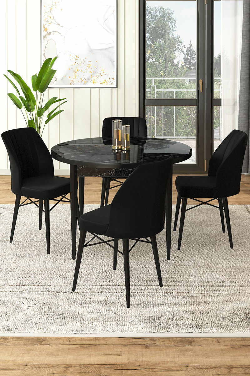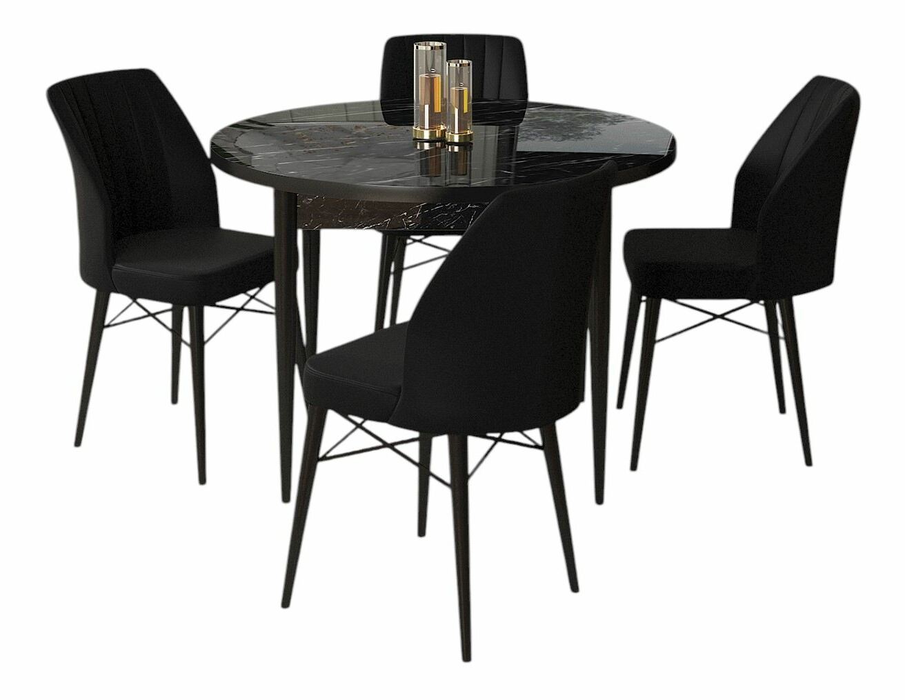 Jedálenský set Roxie (mramor čierny + čierna) (pre 4 osoby)
