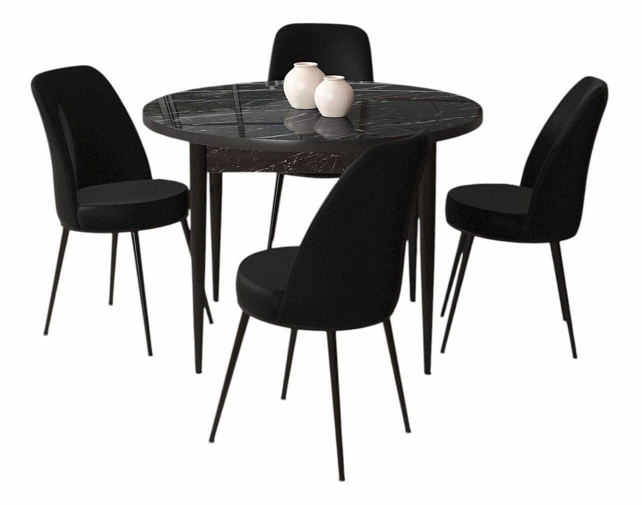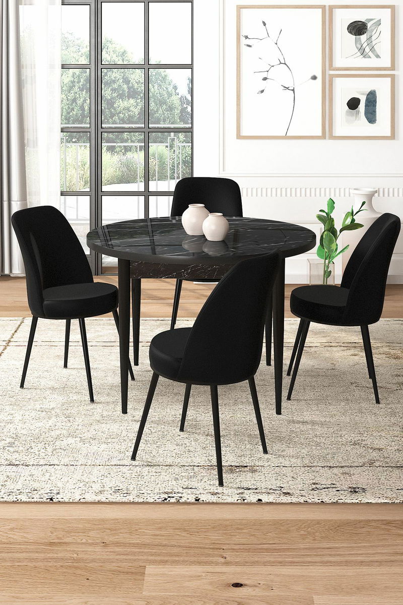 - Jedálenský set Torra (mramor čierny + čierna) (pre 4 osoby)