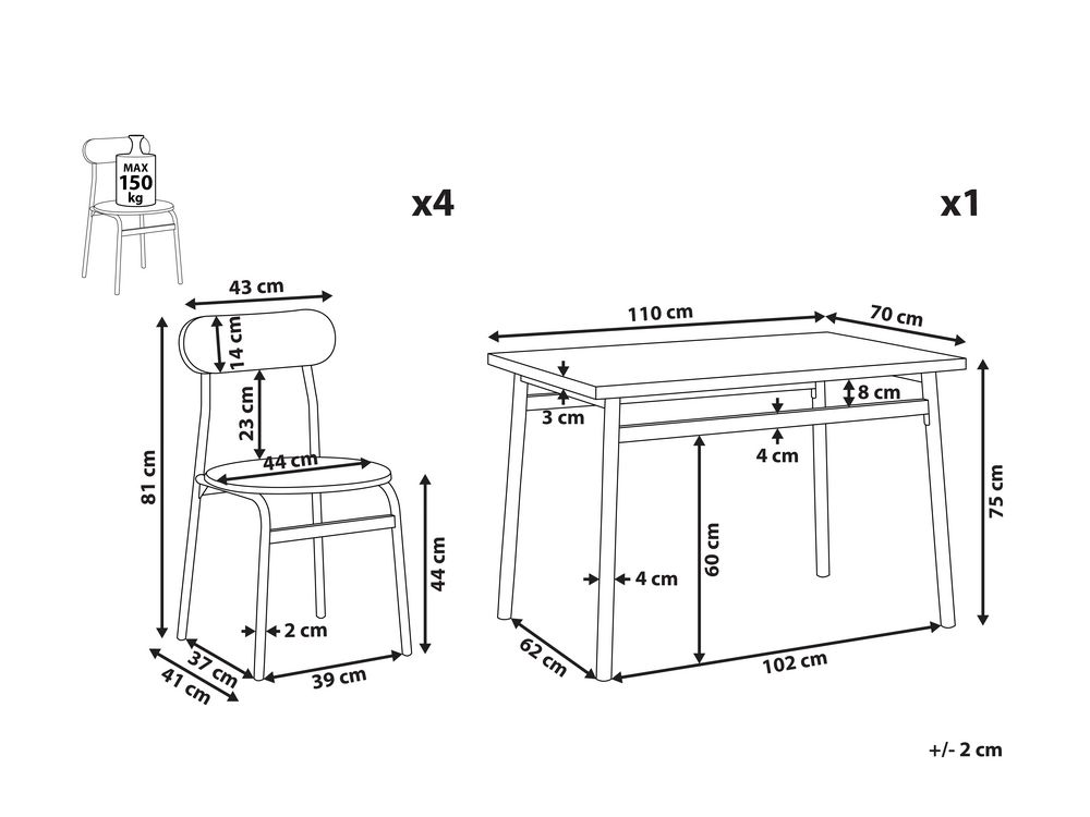 Táto súprava jedálenského nábytku je ideálnou voľbou pre nadšencov industriálneho a minimalistického štýlu. Kombinácia čierneho kovového rámu a svetlosivých povrchov vytvára štýlový dizajn, ktorý doplní každú malú kuchyňu či jedáleň. Pevná konštrukcia a laminovaná doska stola zaručujú odolnosť a ľahkú údržbu aj v domácnostiach s malými deťmi.