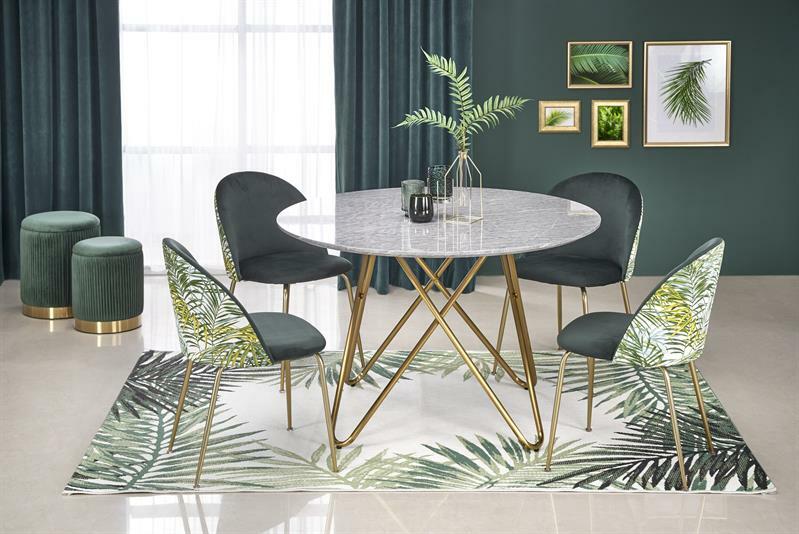 Jedálenský stôl Anit je ideálny pre rodiny alebo skupiny do štyroch ľudí. S výškou 76 cm a hĺbkou 120 cm je dostatočne veľký, aby hostiteľ mohol pohodlne servírovať jedlo. Stôl má moderný dizajn s laminovanou MDF doskou so sivým a zlatým odtieňom a chrómovanými oceľovými nohami, ktoré pridávajú do interiéru štýl a eleganciu. Materiál stola je ľahko udržiavateľný a odolný voči poškodeniu, čo z neho robí skvelú voľbu pre každodenné použitie v domácnosti.