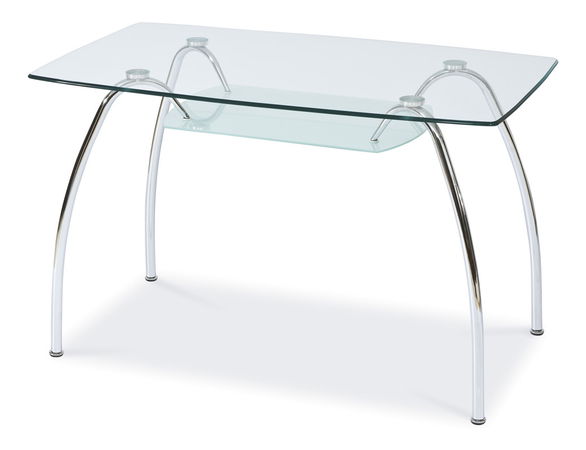 Moderný stôl Arachne I v netradičnom dizajne je vhodný skôr do moderných domácností. Zaujme Vás farebným podaním, kde vrchná doska stola je z tvrdeného priehľadného skla, spodná časť je z mliečneho skla a plní odkladaciu funkciu. Stôl pojme maximálne 4 ľudí.