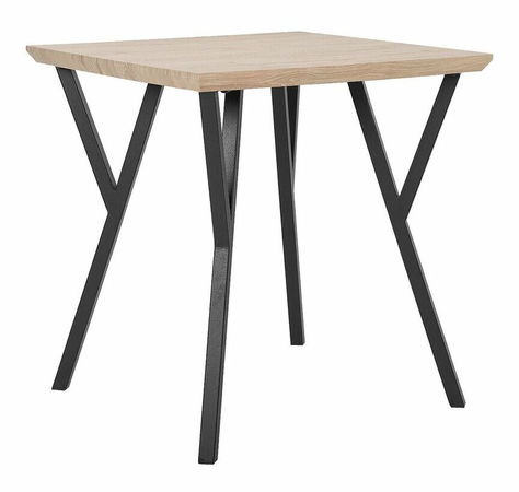 Tento minimalistický stôl bude štýlovým doplnkom každej jedálne alebo kuchyne v škandinávskom či modernom dizajne. Doska stola je vyrobená z odolného a ľahko udržiavateľného MDF materiálu vo farbe svetlého dreva a zaujímavo tvarované nohy sú vyrobené z kovu v klasickom čiernom prevedení. Celkový dizajn stola vyniká svojím elegantným matným povrchom. Stôl je vhodný pre 4 osoby a je ideálny na rodinné večere alebo posedenia s priateľmi.