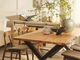Tento jednoduchý, ale zaujímavý stôl dokonale doplní zariadenie jedálne alebo kuchyne v modernom či industriálnom štýle. Doska stola vyrobená z dyhovaného MDF materiálu vo farbe dreva dodá interiéru jedinečný charakter aj vďaka svojim nepravidelným okrajom. Kovové nohy v tvare X s práškovou povrchovou úpravou poskytujú stabilitu a okrem toho sú ďalším štýlovým detailom. Zložený stôl ponúka sedenie pre 4 osoby, ale v rozloženom stave poskytne ďalší priestor aj pre neočakávaných hostí.