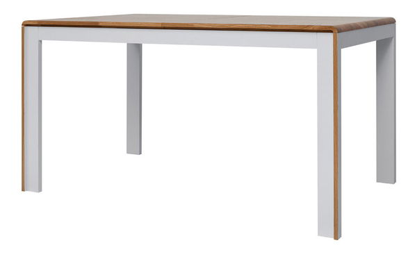 Jedálenský stôl klasického tvaru. Stôl je možné rozložiť z dĺžky 140 cm na dĺžku 180 cm. Dostupný vo farebnom prevedení: biela + dub prírodný.