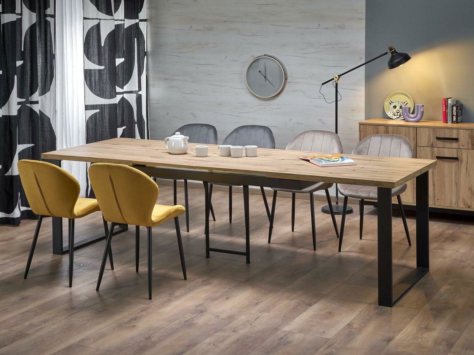 Tento rozkladací stôl v loftovom štýle kombinuje funkčnosť s moderným dizajnom a je ideálny pre každodenné použitie, rovnako ako pre špeciálne príležitosti. Doska stola je vyrobená z kvalitnej laminovanej dosky, ktorá odoláva bežnému opotrebeniu a udržuje si svoj estetický vzhľad dlhodobo. Nohy stola sú vyrobené z kovu a sú práškovo lakované, čo zaručuje vysokú stabilitu a odolnosť voči škrabancom. Pri rozložení dosahuje stôl impozantnú šírku 310 cm, čo poskytuje dostatok priestoru pre väčší počet hostí. Dizajn stola je doplnený o dve robustné nohy a podperu, ktoré zabezpečujú jeho stabilitu. Tvar obdĺžnika umožňuje praktické využitie priestoru a dokonale zapadá do akéhokoľvek moderného interiéru.