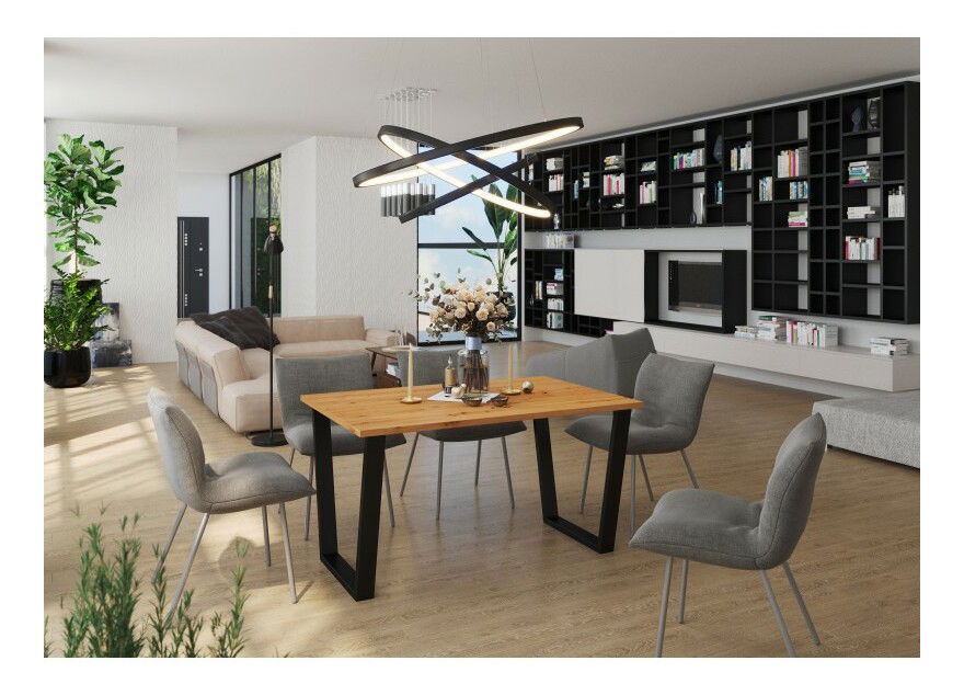 Jedálenský stôl Carol 138x67 (dub artisan) je ideálny pre 4 až 6 osôb. Výška stola je 75 cm a hĺbka 67 cm. Tento krásny industrialny stôl s bielou doskou a čiernymi nohami bude skvelým doplnkom každej kuchyne alebo jedálne. Stolová doska má hrúbku 28 mm a nohy sú kovové, striekané práškovou čiernou farbou. Rozmery nožičiek sú 80 mm x 40 mm. Stôl vyžaduje celkovú montáž, no nohy sa dajú polohovať do ľubovoľnej vzdialenosti. Doska stola nie je označená montážnymi otvormi.