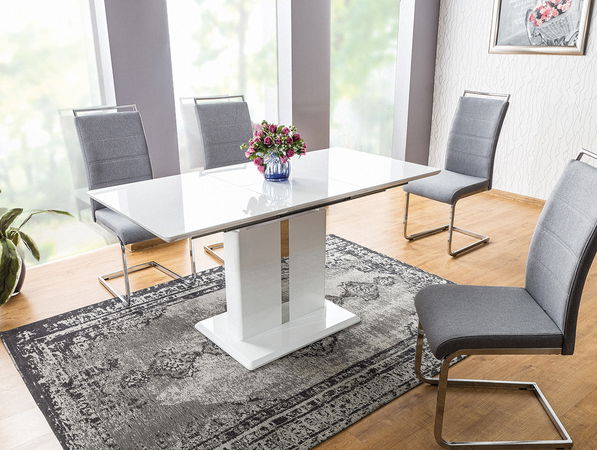 Jedálenský stôl Deann je moderný stôl, ktorý je ideálny pre rodiny s 4 až 6 členmi. S výškou 76 cm a hĺbkou 75 cm ponúka dostatok miesta pre pohodlné stolovanie. Lesklý biely povrch stola dodáva vašej jedálni elegantný vzhľad a zároveň sa ľahko udržiava čistý. Stôl Deann je vyrobený z kvalitných materiálov, ktoré zabezpečujú jeho pevnosť a odolnosť. Tento stôl je skvelou voľbou pre tých, ktorí hľadajú funkčný a pritom štýlový jedálenský nábytok.