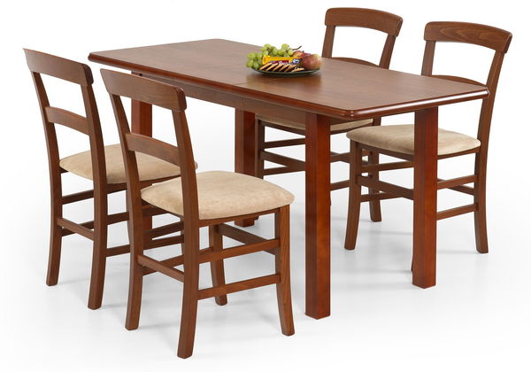 Priestranný a klasický jedálensky stôl Dinner značky Halmar je čistého dizajnu vhodný takmer do akejkoľvek jedálne alebo kuchyne. Jedálenský stôl je vyrobený z kvalitnej laminovanej MDF drevotriesky a bukového masívu, je dodávaný v krásnych farebných prevedeniach jelše alebo čerešne antickej. Za jedálenský stôl si usadnú až 4 až 6 osôb.