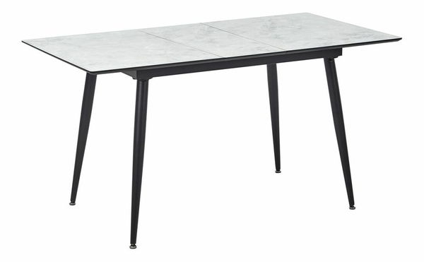 Doplňte svoju jedáleň týmto elegantným obdĺžnikovým stolom. Súčasťou stola je rozkladacia stolová doska, ktorá poskytne ďalší priestor na sedenie pre vašich priateľov alebo rodinu. Kovové nohy zaručujú stabilitu a mramorový efekt na vrchnej doske stola mu dodáva očarujúci vzhľad. Skombinujte ho s pohodlnými jedálenskými stoličkami a vytvorte si príjemný jedálenský kút.