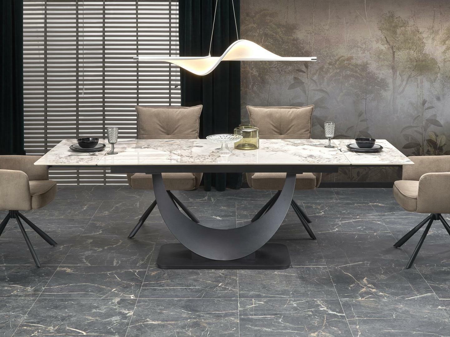 Jedinečnosť stola Fergie nespočíva len v jeho estetike, ale aj v praktickosti. Vďaka sklopnej doske stola môžete jeho veľkosť prispôsobiť meniacim sa potrebám a počtu hostí. Ide o dokonalé riešenie pre tých, ktorí oceňujú funkčnosť v kombinácii s moderným štýlom. Čierne oceľové nohy v tvare U sú nielen stabilnou konštrukciou, ale aj pútavým prvkom, ktorý dodáva stolu Fernando charakteristický moderný vzhľad. Kombinácia bieleho mramoru a hlbokej čiernej robí z tohto stola nielen kus nábytku, ale skutočné umelecké dielo, ktoré upúta a dodá eleganciu celému okoliu.