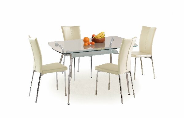 Krásny a moderný stôl Forbes je vhodný do menšej jedálne či kuchyne. Stôl sa skladá z dvoch úrovní kde spodná úroveň može spĺňať odkladaciu funkciu a je vyrobená z mliečneho skla. Vrchná tabuľa stola je vyrobená z tvrdeného číreho skla. Nohy stola sú vyrobené z kvalitnej chrómovanej ocele. Forbes je vďaka svojmu neutrálnemu farebnému prevedeniu vhodný do akéhokoľvek moderného interiéru a pojme až 4 osoby.