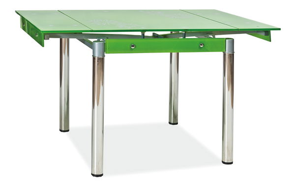 Stôl GD-082 zelenej farby má podobne ako model GD-015 výklopné bočnice, vďaka ktorým Vám ušetrí miesto a preto je vhodný do menších kuchýň či jedální. Zaujme Vás jednoduchým no účelným dizajnom a krásnou farbou. Stôl je vhodný pre maximálne 4 osoby.