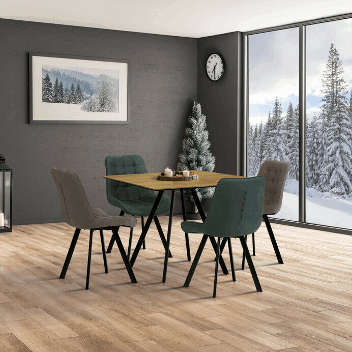 Jedálenský stôl HT-R5190 OAK ponúka okrúhly tvar s priemerom 90 cm a výškou 76 cm, ideálny pre menšie jedálne priestory. Doska je vyrobená z MDF s matnou laminátovou povrchovou úpravou v dekore dub, opatrená ABS hranou pre zvýšenú odolnosť proti poškodeniu. Stabilná kovová podnož v čiernej farbe zabezpečuje pevnú oporu a dlhú životnosť, pričom rektifikačné nohy umožňujú vyrovnanie nerovností podlahy. Kombinácia kvalitných materiálov a precízneho prevedenia dodáva stolu moderný a zároveň prírodný vzhľad, ktorý sa ľahko integruje do rôznych interiérov. Nosnosť a rozmery stola sú prispôsobené bežnému domácemu používaniu.