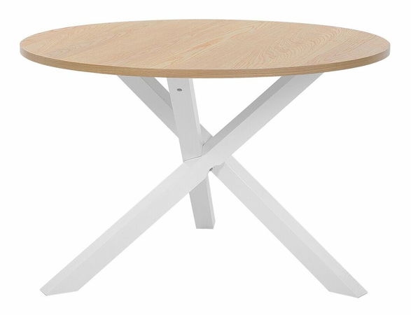 Tento okrúhly jedálenský stôl osvieži vzhľad akéhokoľvek interiéru. Stolovú dosku vyrobenú z MDF materiálu s povrchovou úpravou vo farbe svetlého dreva dopĺňajú drevené nohy v bielom farebnom prevedení. Vďaka svojmu nadčasovému dizajnu je dobrou voľbou do interiérov zariadených v rôznych farebných prevedeniach.