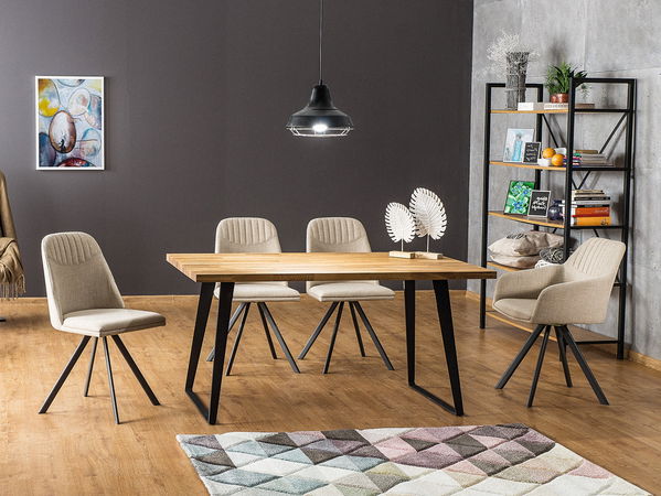Jedálenský stôl Jord je ideálny pre rodiny a skupiny priateľov, ktoré sa radi stretávajú a jednajú dokopy. S kapacitou pre 6 osôb a výškou 77 cm, tento stôl je skvelou voľbou pre rôzne príležitosti, od večerí s priateľmi po rodinné oslavy. Doska stola je vyrobená z prírodnej dyhy, ktorá dodáva stolu príjemný a prirodzený vzhľad. Nohy sú vyrobené z kovu, čo zabezpečuje stabilitu a pevnosť. S hĺbkou 90 cm je na stole dosť miesta pre rôzne jedlá a nápoje. Jedálenský stôl Jord v dubovej farbe s čiernymi nohami je modernou a štýlovou voľbou pre každú domácnosť.