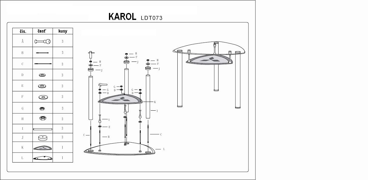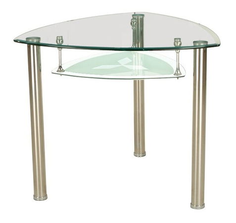 Jedálenských stôl menších rozmerov sa hodí do moderne zariadených priestorov, kde potrebujete ušetriť každý kúsok voľného miesta. Od ostatných stolov sa odlišuje svojim dizajnom, ktorý je na rozdiel od klasických stolov trojstarnný so zaoblenými hranami. Vrchnú dosku z 10 mm hrubého tvrdeného skla podopierajú tri ocelové nohy. Pod vrchnou doskou je ešte upevnená menšia polička z mliečneho skla. Vďaka svojim rozmerom sa k nemu pohodlne usadia tri až štyri osoby. Vhodné stoličky si môžete vybrať a priobjednať na našom internetovom obchode.
