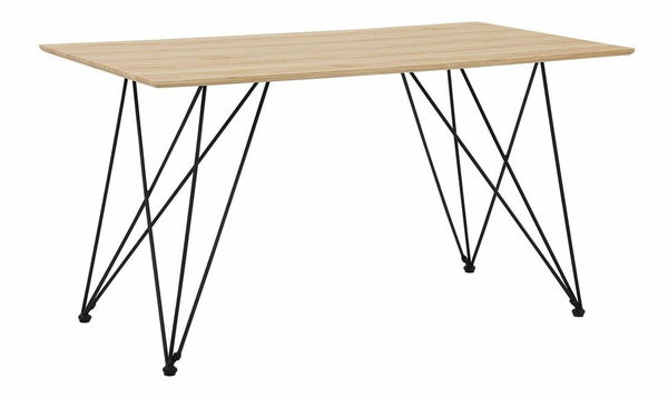 Vylepšite vzhľad svojej jedálne, kuchyne alebo obývacej izby s týmto elegantným jedálenským stolom pre 4 osoby. Vrchná doska z MDF materiálu s povrchovou úpravou vo farbe svetlého dreva a čierne kovové nohy vytvárajú pútavý dizajn vhodný na každodenné stolovanie. Stôl možno skombinovať so stoličkami alebo lavicou a vytvoriť moderný jedálenský priestor.