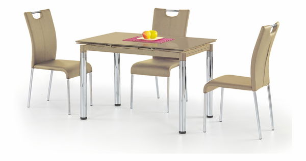 Perfektný jedálenský stôl L31 značky Halmar je nadizajnovaný do moderných interiérov, nohy stola sú osadené do vrchnej tabule. Tento jedálenský stôl je vyrobený z kvalitnej chrómovanej ocele a vrchná tabuľa je vyrobená z béžového skla. Jedálenský stôl je dodávaný vo farebnom prevedení béžovej a vďaka svojim rozmerom pojme 4 až 6 osôb, je vhodný do menších až stredne veľkých interiérov Vašej jedálne, či kuchyne. Stôl je rozkladací.