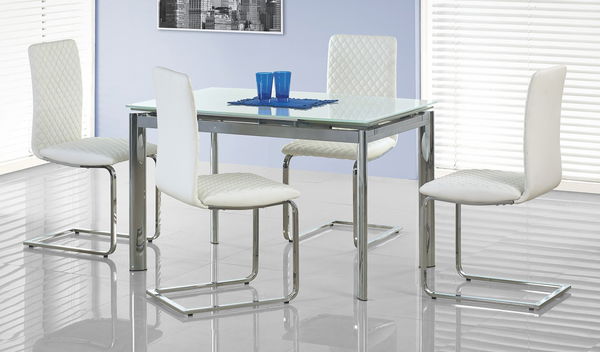 Jedálenský stôl Lambert je krásnym a dizajnovým doplnkom, ktorý skvele splní svoj účel vo Vašej kuchyni, či jedálni. Stôl je vyrobený z extra bieleho skla s priehľadným okrajom, z ktorého je vrchná tabuľa stola a chrómovanou oceľou. Lambert je rozkladací a vďaka svojmu rozkladaciemu systému pojme 4 až 8 osôb, kompaktné rozmery zaručujú, že stol ľahko umiestnite aj v menších priestoroch kuchyne, či jedálne.
